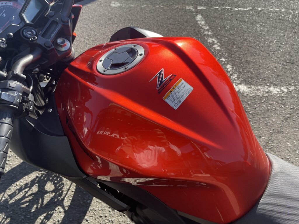 また車両のサイズ感も250㏄のサイズ感でなく現行のミドルクラスと比べて遜色ないのも特徴的でないでしょうか。 タンク容量は17Lとなっており先ほどの顔の比較対象でありますZ650と比べても2L多い要領です。