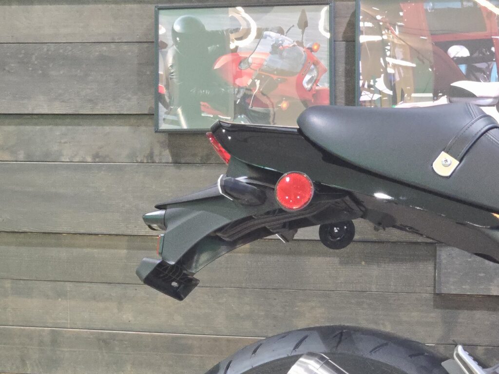 また「カスタム」はZ900RSを語るうえで重要なキーワードになります。発売以来多くのパーツメーカーがしのぎを削って開発してきた膨大なカスタムパーツ達ですが、今回のモデルチェンジでボディに大きな変更がないとはいえ、互換性が無かったり適合が分からないものも多くあります。人気のロングテールも取り付けは出来そうですが、リフレクターが必要になった今の形ではそのまま取り付けるのは難しいかもしれません。カスタムの定番であるマフラー交換では、O2センサーの数が増えたこともあり従来の製品は間違いなく付けることは出来ません。もちろんこれから新しいタイプのものはどんどん出てくるはずですが、いままでのモデルと同じくらいのカスタムをするには数年はかかる可能性が高いと思われます。