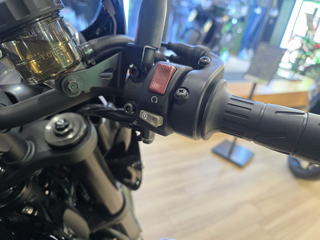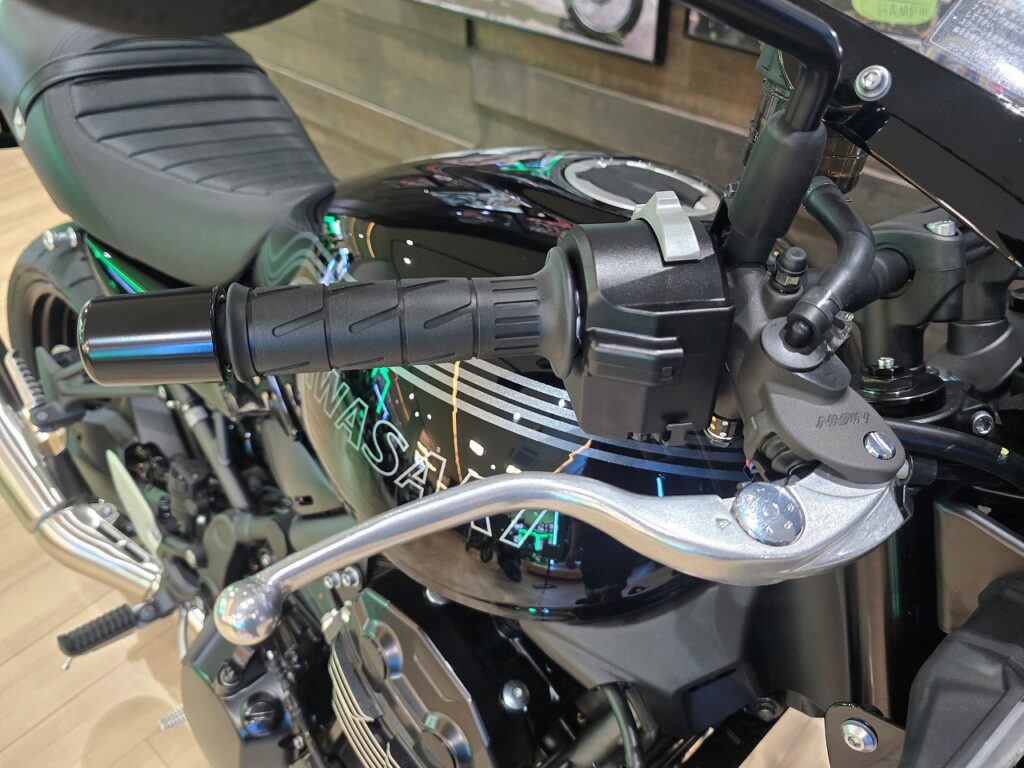 2026年モデルで採用された新機能をご紹介しましたが、2025年モデルのZ900RS CAFEも評価されている点も多くあります。Z900RSはネオクラシックと呼ばれるジャンルに位置しますが、特に「クラシック」という所がまさに評価されている点の一つです。スイッチボックスは多機能化により近代的なデザインのものに変更されてきておりますが、25年までは「クラシック」と呼ぶにふさわしいデザインです。