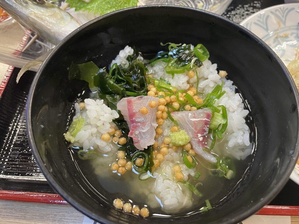 以前も食事をしたのですが忘れられず今回もお邪魔しました。 アジフライは身も厚く文句なしの美味しさです。 ここで注目なのが刺身がお勧めです。水槽から直接取り出し捌いているので鮮度抜群です。運ばれたときはまだ動いております。 また締めのお茶漬けも抜群に美味しいので皆様もよろしければ一度お楽しみください。