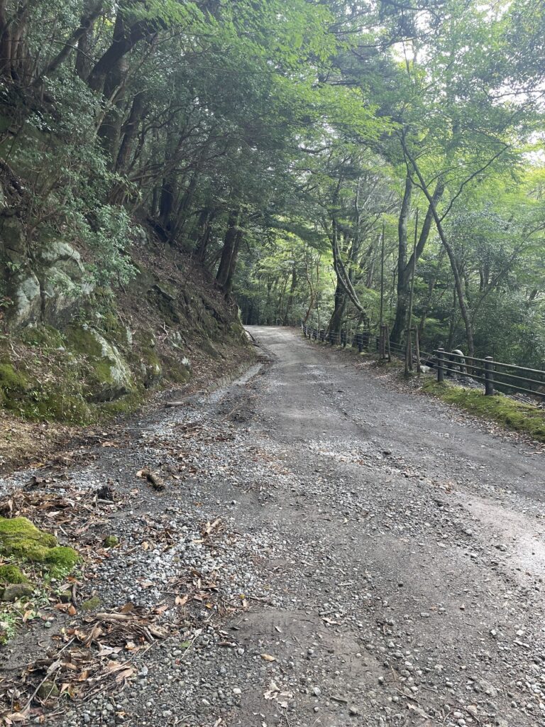 道幅もオートバイであれば問題ないのですが四輪車ですと大変だと思います。またオートバイでも車高が低いものやオンロードタイヤでは滑りやすいかと思いますのでくれぐれもお気をつけていただけますと幸いです。