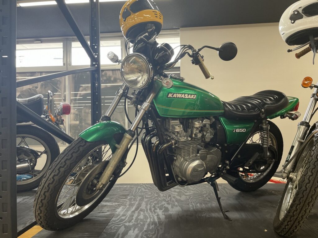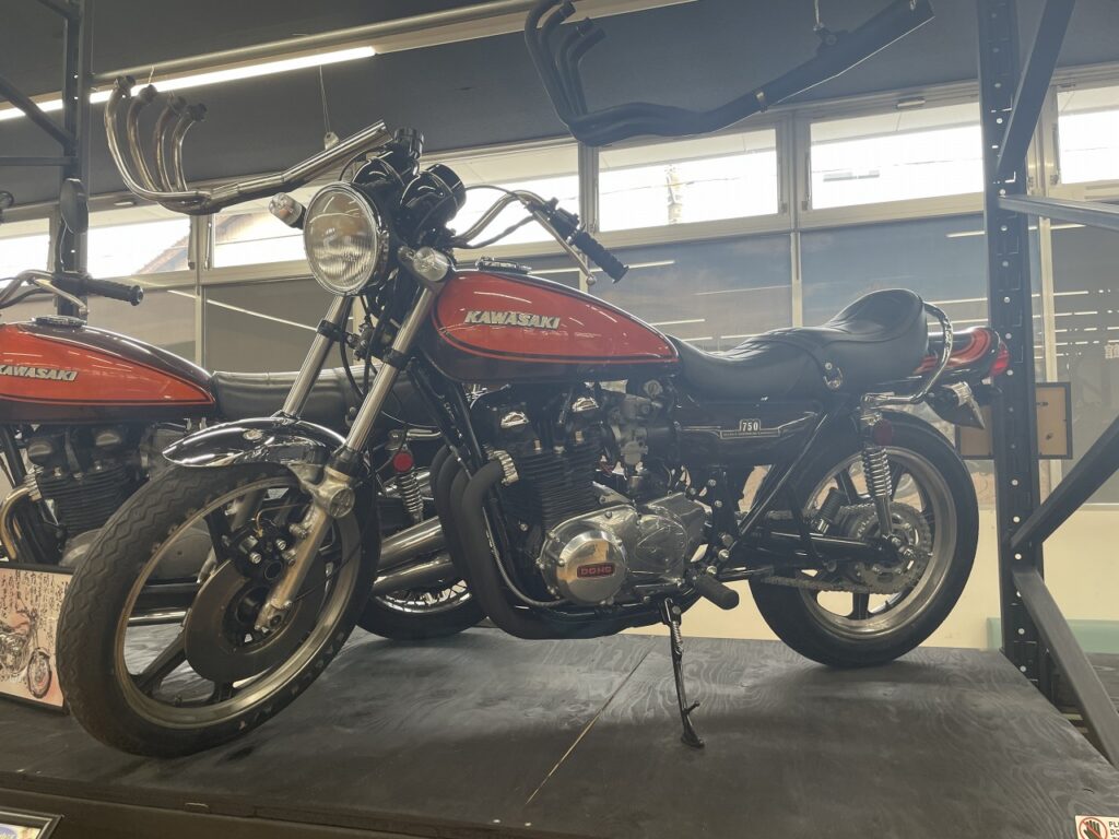 相模原市のオートバイショップ様が運営に携わっているようで珍しい車両ばかり展示されております。 嗅ぎなれたカワサキプラザの香りとは異なり、昔ながらのオートバイを連想させるような香りはどこか懐かしく感じますね。 こちらの車両は「ZAPPER(ザッパー)」の通称で呼ばれており現代のZ650RSのモデルとなったオートバイですね。