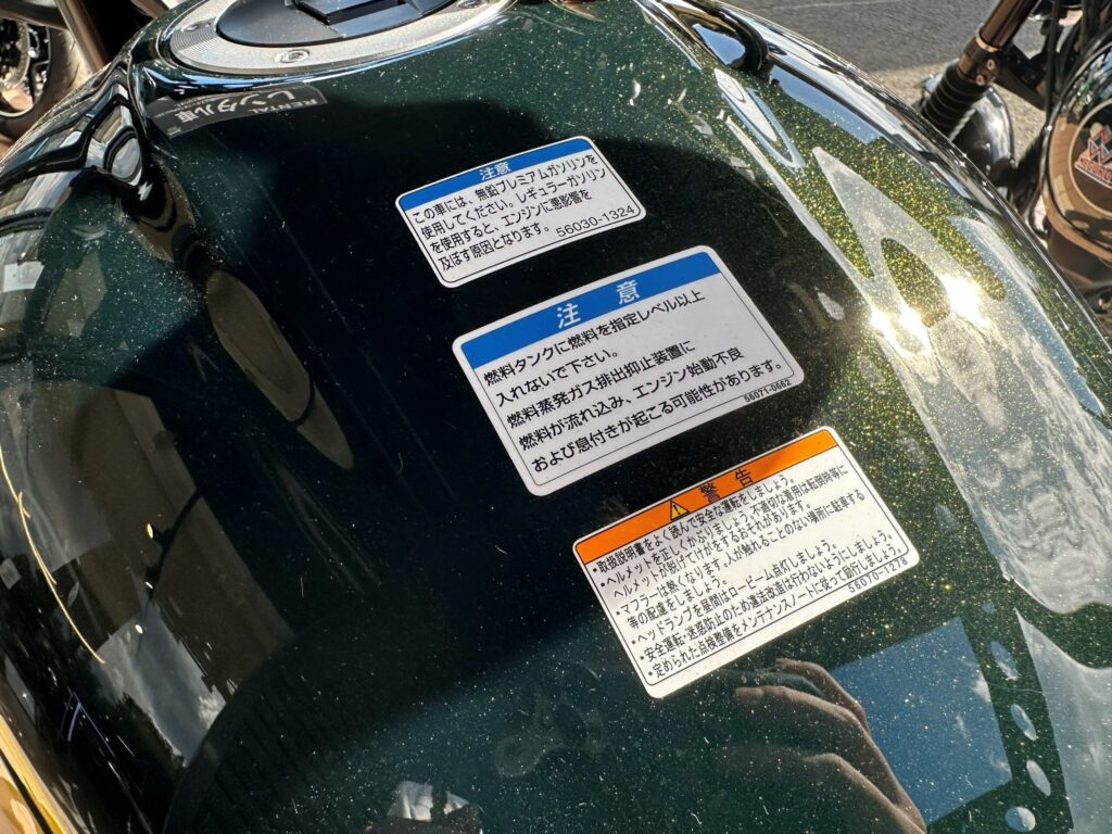 オートバイでは規定レベル以上の給油はお控え頂くようにお願いいたします。