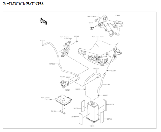 燃料蒸発ガスを大気に放出しておりましたが、近年では環境問題の観点から揮発したガスをもう一度エンジンに送り込む装置、燃料蒸発ガス排出抑制装置(エバポレータ)が搭載されるようになりました。