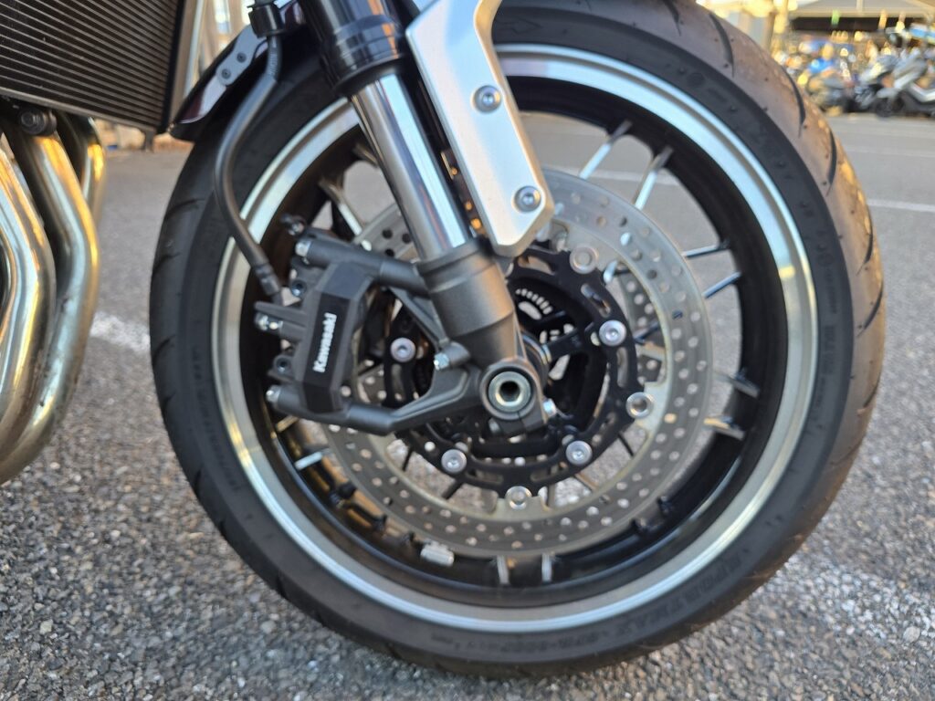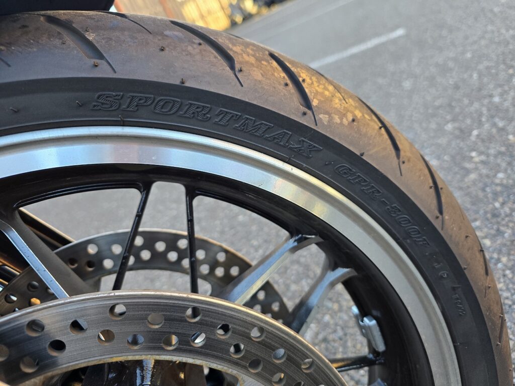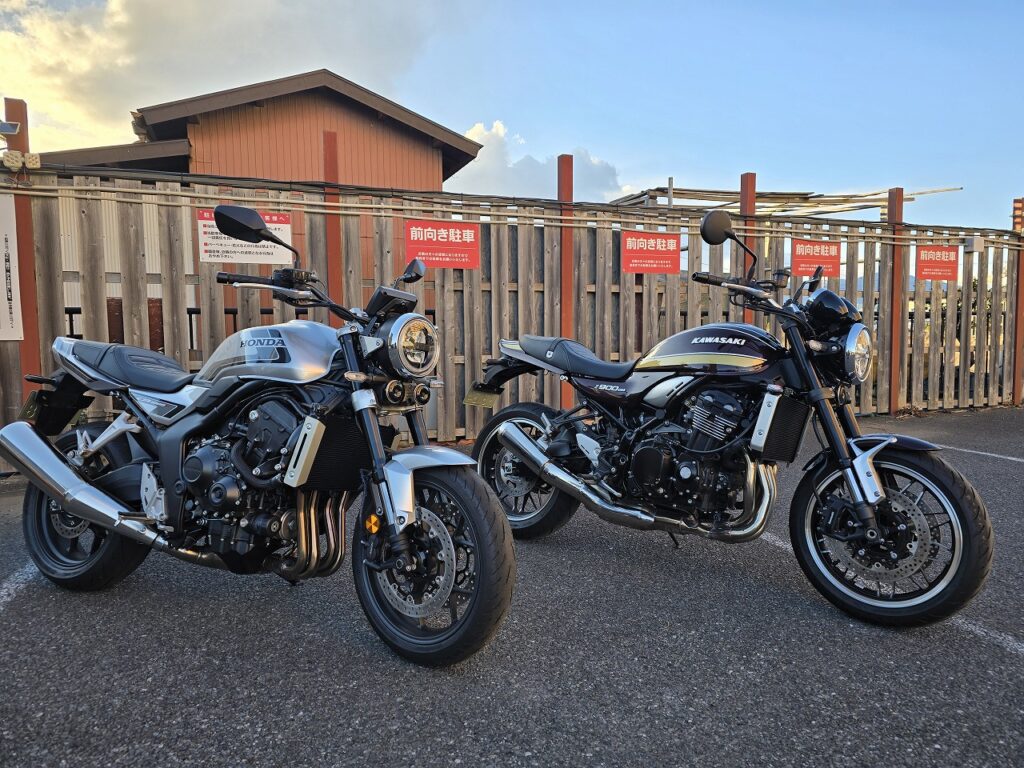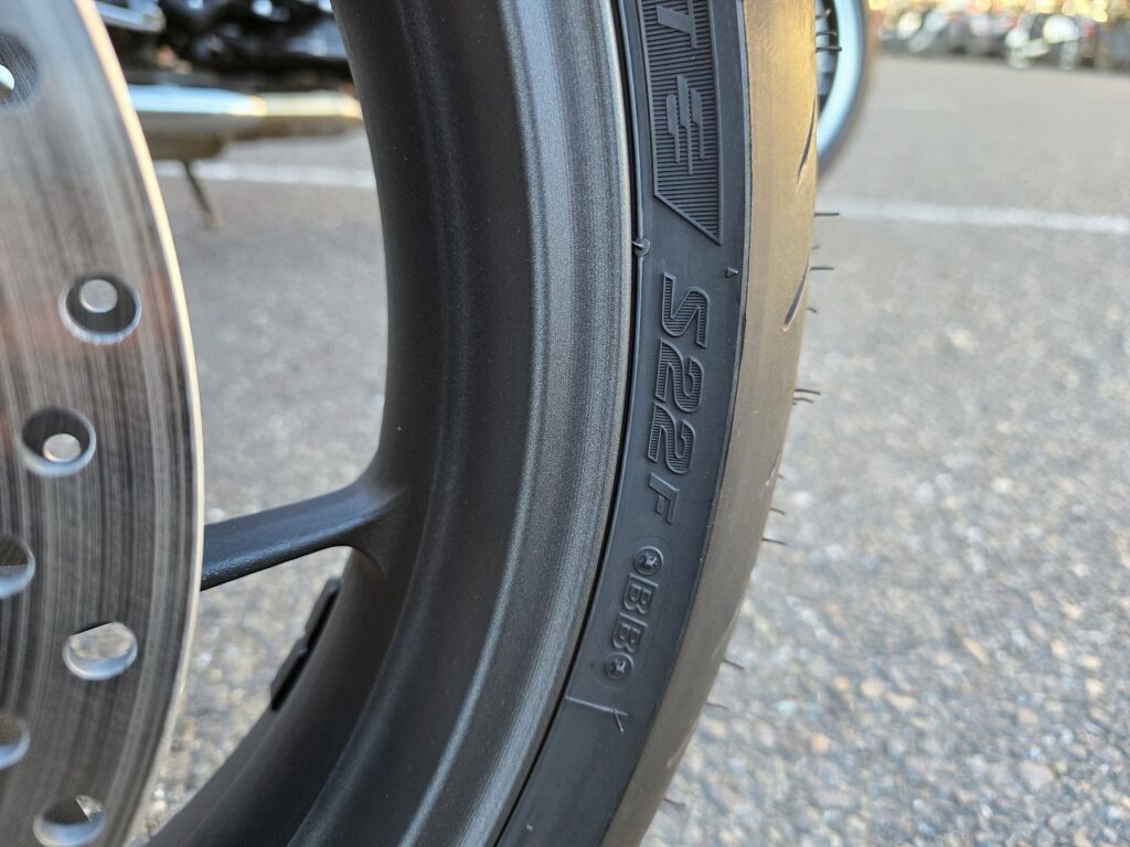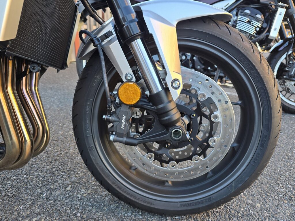 タイヤの違いですが、Z900RSのGPR-300はツーリング志向のタイヤです。CB1000Fの純正タイヤS22は比較的スポーツ志向のタイヤで、カワサキではNinja1000SXやZX-6Rに採用されていました。GPR-300も悪いタイヤというわけではありませんが、グリップ力とロングライフを両立させたS22は当時非常に評判が良く、Z900RSにもはかせる方が多くいました。しかしS22は後継のS23が2024年に発売されており、新品ではあまり見かけなくなってきたタイヤですので、初期ロットのみS22、以降は違うタイヤが採用される可能性もありそうです。