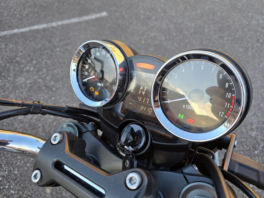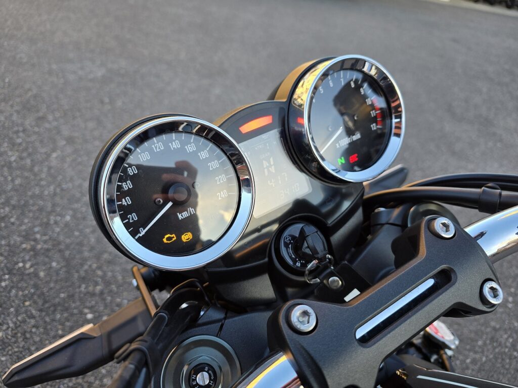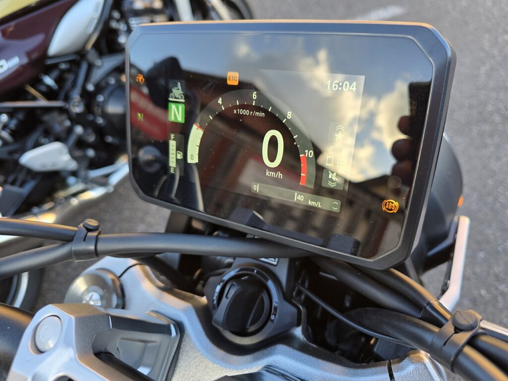 Z900RSはシンプルなのに対してCB1000Fは多機能です。発売年度が大きく違うこともありますが、Z900RSにはABSやトラクションコントロールくらいしか電子的な機能が付いていません。またメーターデザインも大きく異なり、様々な機能があるCB1000Fはデジタルメーターを採用しています。